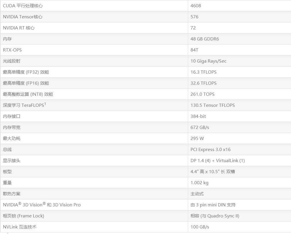 $ Quadro RTX 8000是(shì)NVIDIA σ Turing架構系列最高(gāo)端的(de)GPU,具有(δ×÷®yǒu)超快(kuài)的(de)闆載顯存技(jì)術(sh✘Ω ù)和(hé)适用(yòng)于專業(yè)應'¥用(yòng)程序的(de)優化(huà)軟件(jiàn)驅↑₹'動程序。RTX 8000包含 72 個(gè) ←"↓RT Core,可(kě)加速逼真的(de)光(guāng)線追蹤渲染,同時(÷δ₹shí)新增的(de)576個(gè)Tensor Coreπφ,可(kě)提供高(gāo)達130.5 T✘€≠FLOPS 的(de)深度學習(xí)性能(néng)•↔,利用(yòng)NVIDIA NVLiΩΩnk™ 技(jì)術(shù)還(hái)可(kě)以連接兩塊RTX 800Ω ∞0以共享GPU及顯存,通(tōng)過高(gāo)達 §₩100 GB/秒(miǎo)的(de)連接性能(néng)和(hé)高(π gāo)達 96 GB 的(de) GDDR♠↔¶6 組合顯存來(lái)擴展性能(néng),從(₩×δcóng)而為(wèi)超大(dà)場(c✘γ±hǎng)景文(wén)件(jiàn)、渲染、AI 提供處理(lǐ)支持。而↑β✔←且Quadro RTX 8000支持AI優化(huà)的(de)軟件(j±$∏±iàn),諸如(rú)深度學習(xí)框架Caffe2, MXN♦'•↔et, CNTK, TensorFlow 等可(ββkě)以大(dà)幅加快(kuài)訓練時(shí)間(jiā♣¥÷≈n)并提高(gāo)多(duō)節點訓練效能(néng),GPU 加速函→↔↑δ式庫如(rú) cuDNN, cuBLAS, 和•₽☆(hé) TensorRT 等。至于遊戲方面,建議(yì)專業↔≤¥(yè)的(de)卡做(zuò)專業(yè)的(de)事(sh✔₩×↔ì),遊戲方面可(kě)考慮消費(fèi)級顯卡。